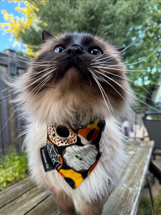 Every piece we make is handcrafted in small batches in Canada, designed with pets and their humans in mind. From snap-button bandanas to elastic-collar designs and catnip toys, our products are created to make everyday moments with your furry family more special.